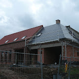 Het dak is nu nl volledig af. Dat wil zeggen : De leien liggen boven de badkamer en de dakgoten hangen. Daarnaast zijn de regenwaterput en sceptische put de grond in gegaan en enkele van de blauwe stenen (onder de ramen) liggen er al. En wat hebben wij zelf gedaan? De kabels vd elektriciteit liggen en dienen nu aangesloten te worden op de kast. Daarnaast starten we met de planning van het sanitair gedeelte (we zijn braaf naar de les geweest vorige week!) en hebben we het badkamermeubel en bad besteld. Er gebeurt dus heel wat (foto's volgen dit weekend).