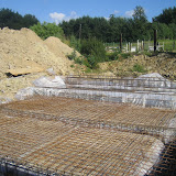 Je ziet ook al mooi hoe de badkamer en het dak er boven zullen uitzien. De kolommen van de leefruimte zijn allemaal gegoten, dus zou ook daar snel een verdiep moeten komen (tenminste daar hopen we stiekem op). Ook de eerste levering isolatie is ter plekke!