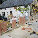 Tja, het gaat goed vooruit (opnieuw 2 metsers), maar we zullen niets kunnen laten zien. Ons foto-toestel heeft nl. de geest gegeven. Geen beeld en zeker geen klank.