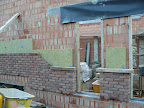 Ze zijn begonnen met het metsen van de gevelsteen. Rondom het huis zitten ze toch al op een kleine meter hoogte. Zoals elke bouwer vermoedelijk zal kunnen beamen, zien deze er toch weer anders uit dan we hadden gezien in de huizen die we bezocht hebben. Maar dat zou in orde komen bij het voegen?!
