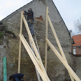 Alle afbraakwerken zijn goed verlopen. Alleen de zijgevel van het voormalige woonhuis, waar wij ons in genesteld hebben, heeft er een beetje onder geleden. Aangezien deze deel uitmaakte van één van de muren van de schuur hebben we deze moeten laten stutten. Voor de kenners noemt dit schoren laten zetten.